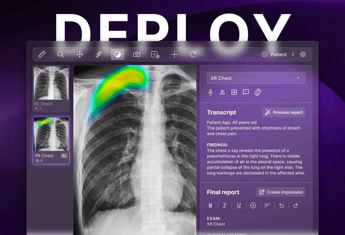 Mit deepcOS®, ihrer herstellerneutralen Plattform, ermöglicht das Münchner HealthTech-Unternehmen die sichere, skalierbare und einfache Integration verschiedenster KI-Anwendungen in radiologische Workflows.